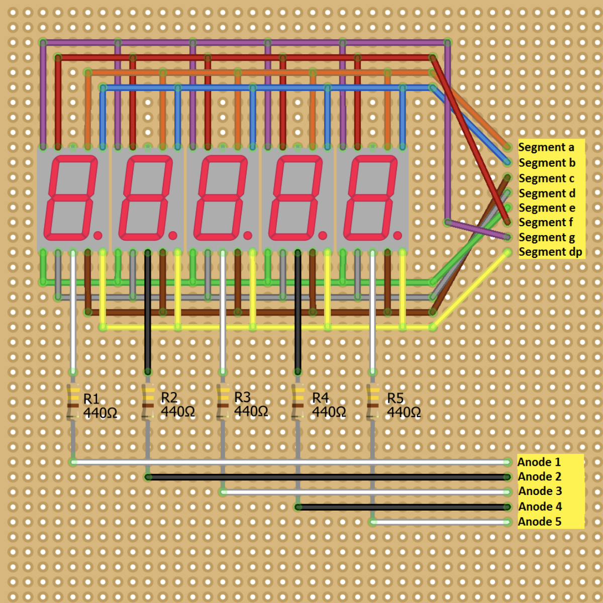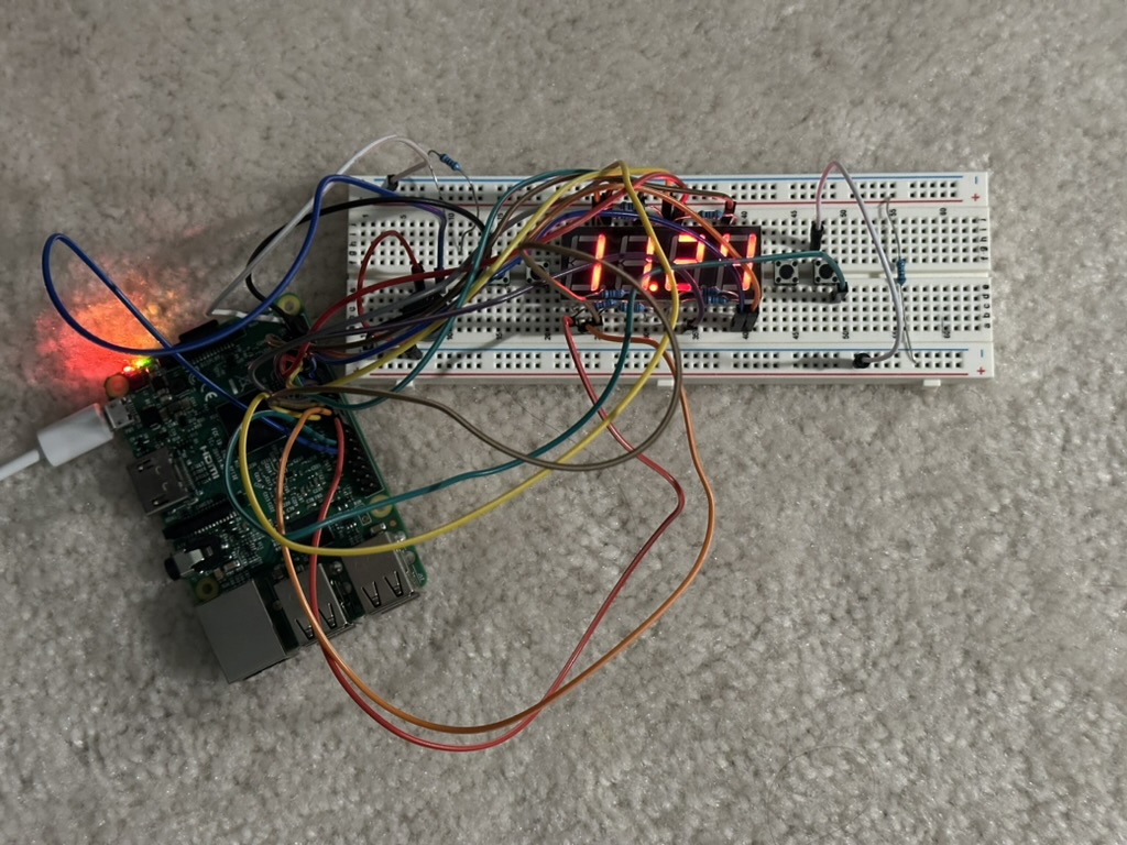 The design incorporates a 7-segment display to display the time, buttons to snooze or turn off the alarm, and a buzzer to act as the alarm itself. The code to determine when the buzzer should go off was delightfully straighforward and the software side of the alarm functionality was done within the hour. Incorporating the hardware took much more time. The buttons and the buzzer were easy to add into the mix, but the 7-segment display took much more time to get working. The final code that allowed the time to be displayed took 6 nested loops to streamline the setup process and allow for each segment to be individually addressed within the code. Once the pins were set up, the task became trivial once again as taking advantage of the predefined segments was a matter of plug-and-play.