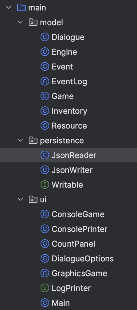 My game draws on the impact of A Dark Room with the intention of creating the same air of mystery. Minimal graphics and poignant storytelling was where the game found it's personality. I drafted out a basic outline of the game and began work on it by creating the classes that would be the backbone of functionality. I wanted to create an easily modifiable framework for the game so that any story could be told. The first phase of development consisted of creating these classes.