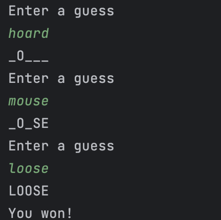 I wanted to create a Wordle clone to understand the difficulties that come with making a simple word game. Plus I love Wordle. My clone is played only through the terminal and the solution word is determined in the code, a random word chosen from a list of approved 5-letter possible solution words. As each guess is made, the word is returned to the player - a letter made lowercase if it exists within the solution and uppercase if the placement of the letter is correct, otherwise the letter is discarded.